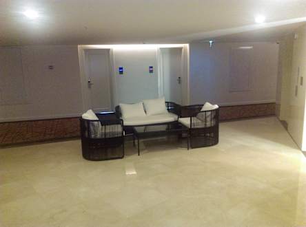 Sitzgelegenheiten in der 5. Etage vor den Aufzügen.