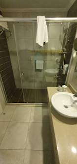 Bad mit sehr großer Dusche mit "eingebauten" Wechselduschen.
