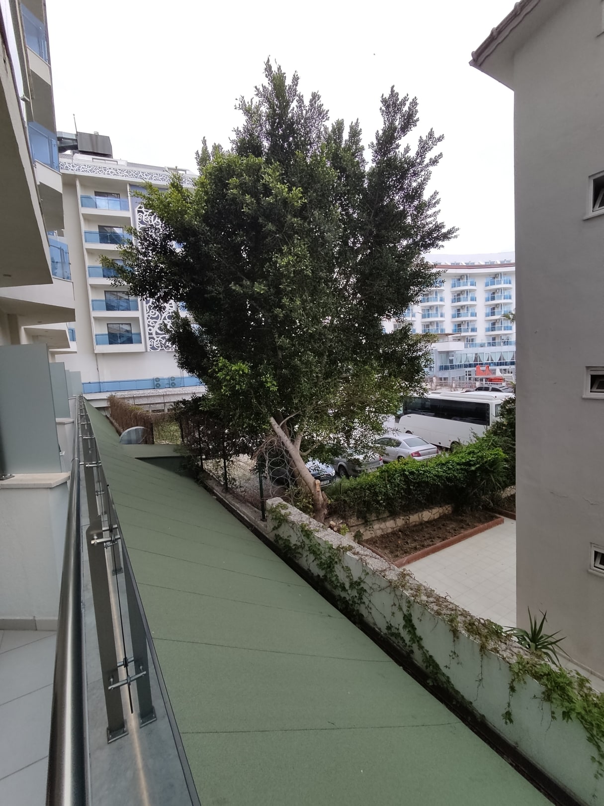 AusblickDas Meer sieht man hier leider nicht so gut. Das Hotel ist ausgebucht und auch gegen Aufzahlung bekommen wir kein anderes Zimmer