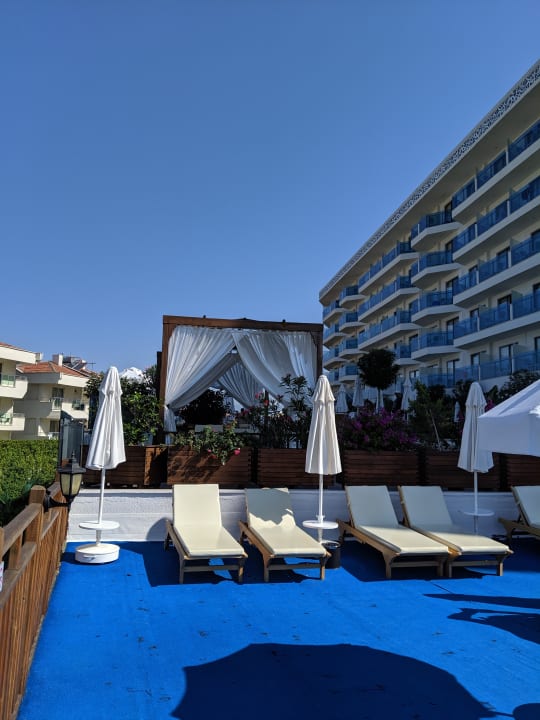 man hat hier zwar bereits vormittags sonne, allerdings ist es sehr laut durch die Animationsmusik
