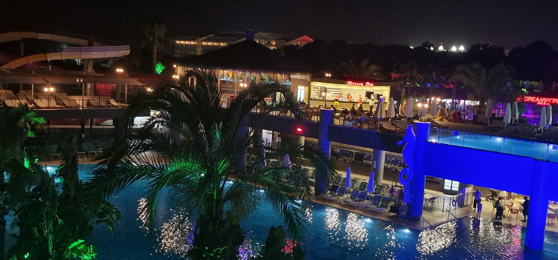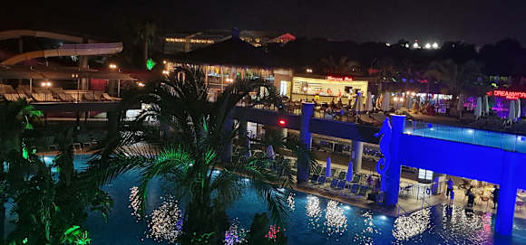 Pool und Terace Bar abends.