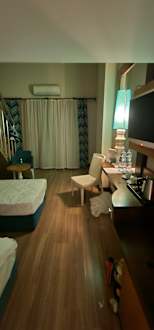 Blick ins Zimmer. Nicht zu vergleichen mit den geworbenen Fotos.
