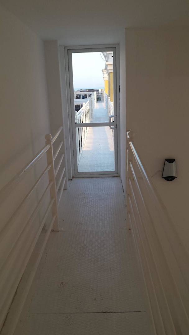 Wurde die Nottreppe bestiegen, folgte der Gang durch den überaus ansprechenden Flur. Sehr dreckig, genauso wie die vor Kopf liegende Tür!