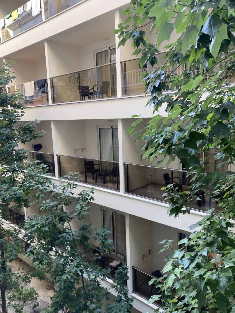 Blick vom Balkon aus, direkt am nächsten Hotel
