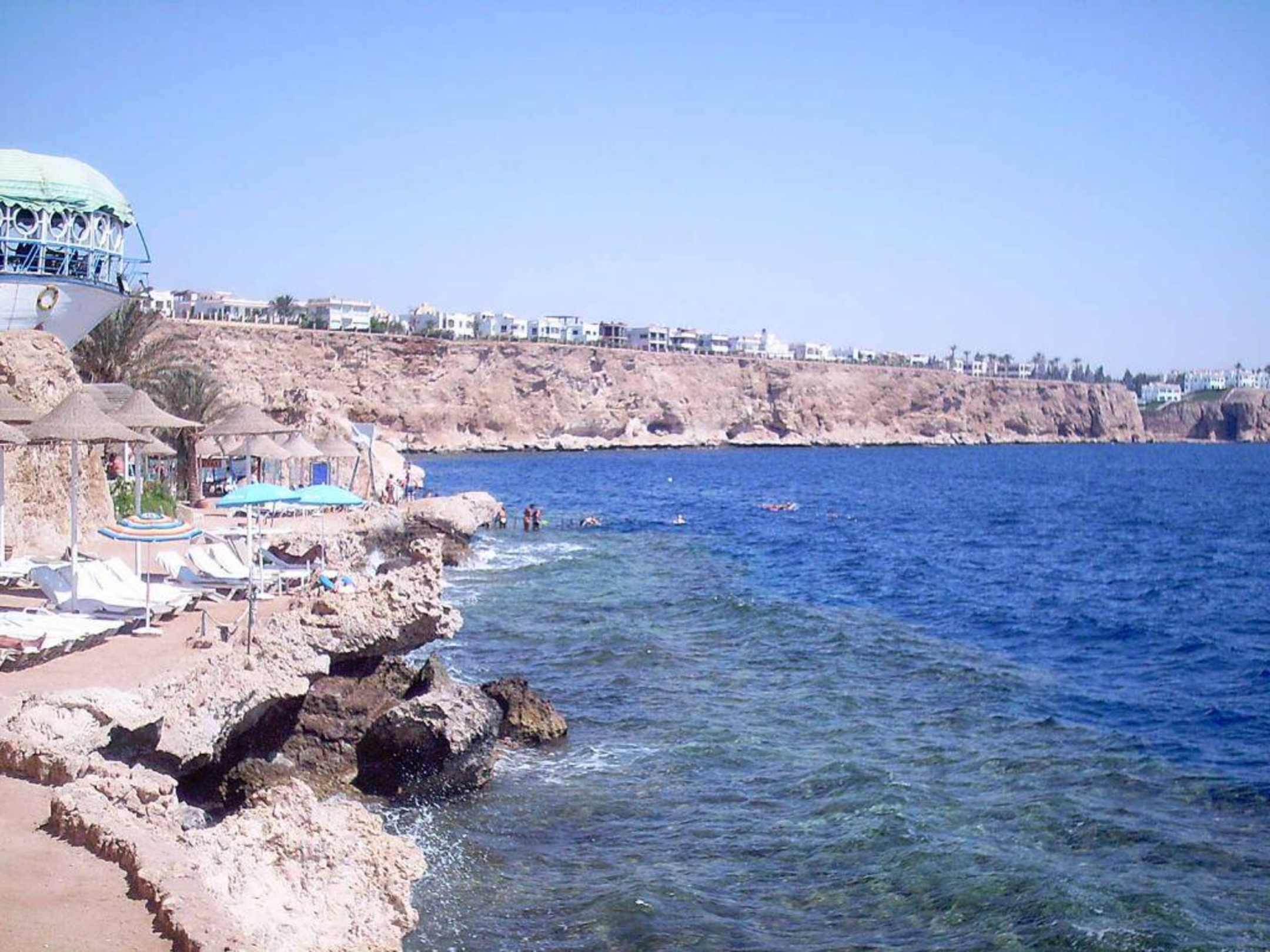StrandBlick vom schmaleren Liege-Teil des Strands Richtung Klippe und Hauptstrand