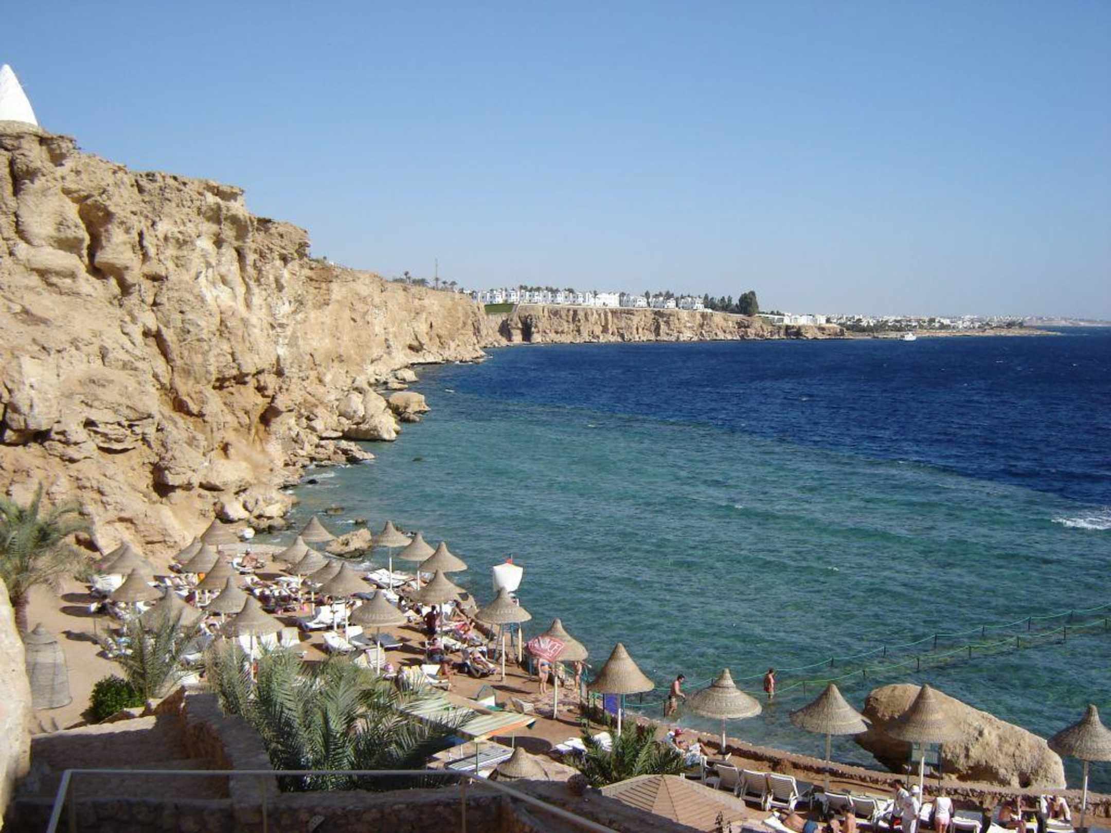 am Strandlinker Strandbereich der Hotels Dreams Beach und Vacation, erreichbar über Treppen