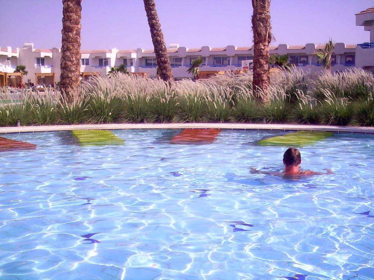 Die Liegen im Pool - eine tolle Kombination von Wasser, Entspannung, Lesen und Sonne