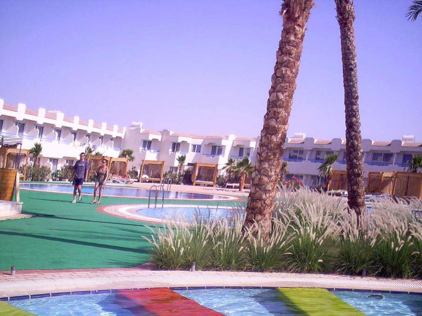 hinterer Teil der Poolanlage mit den "Himmelbetten" im Hintergrund