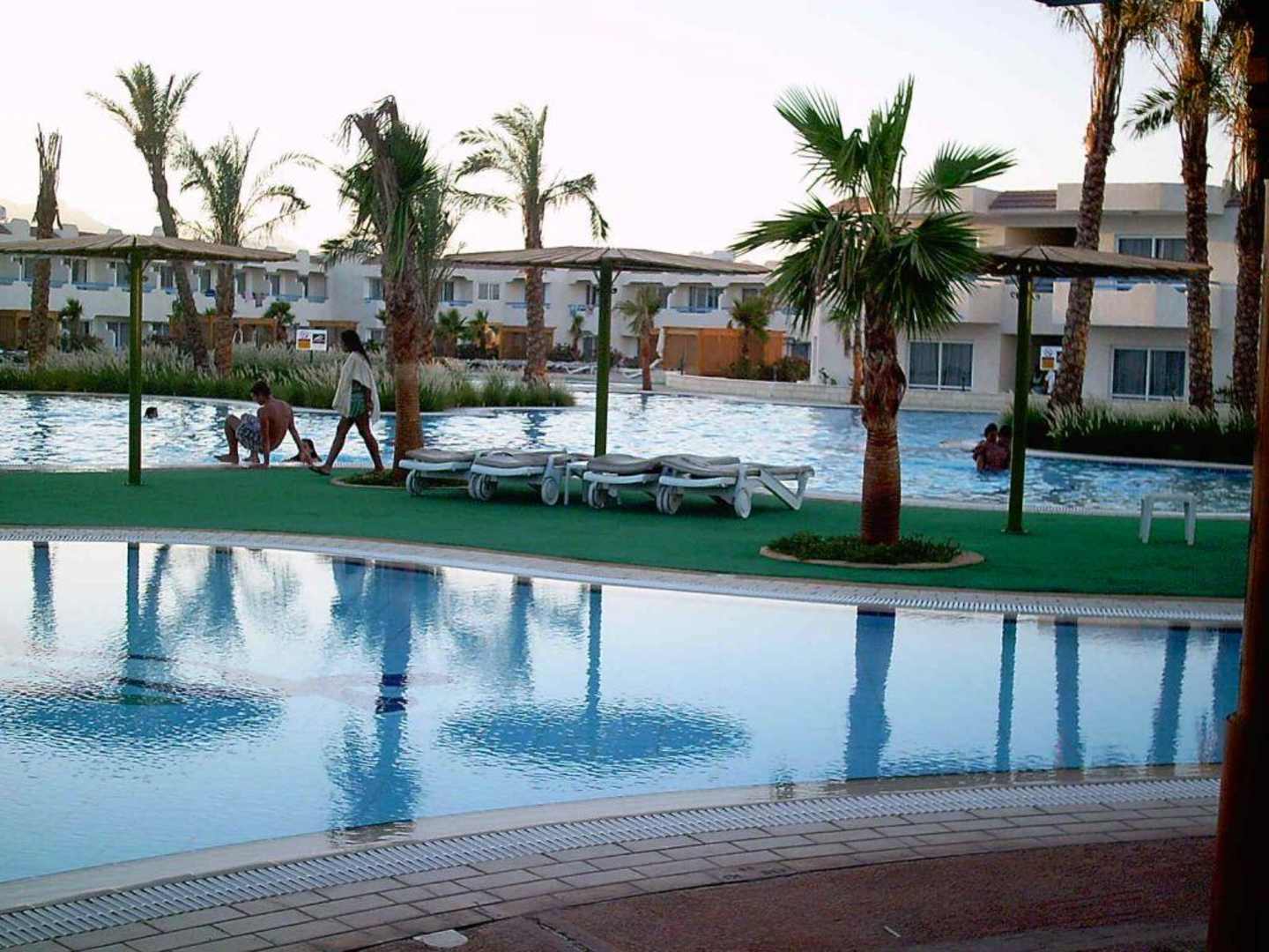 Blick auf den Pool am Abend