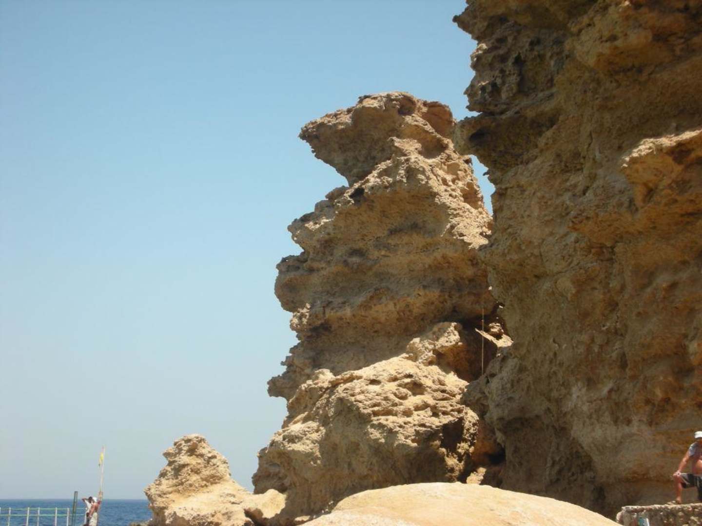 Hier ein Felsvorsprung am Strand des Dreams Vacation.