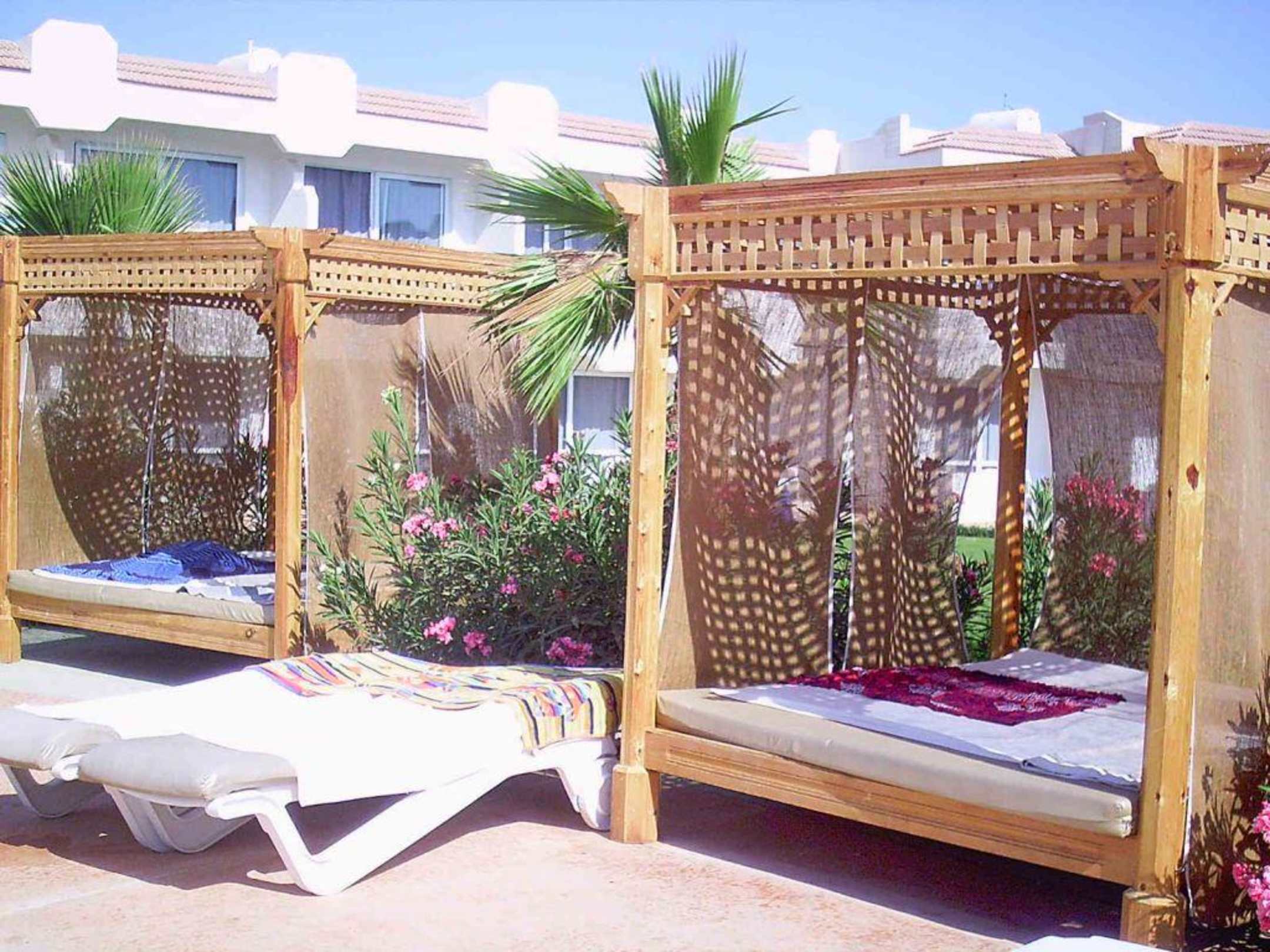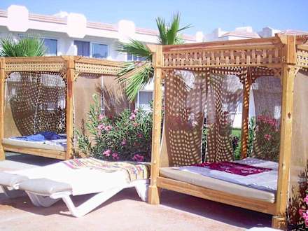 Die Himmelbetten (9 Stück) am Pool