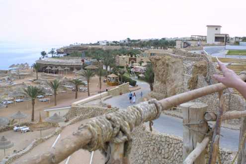 Oben rechts der kleine weiße Turm ist der Aufzug zur ersten Strandebene