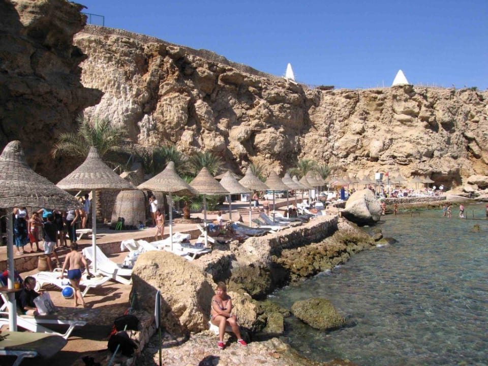 Der Strand ist mit Naturstein betoniert, Dusche ist vorhanden.