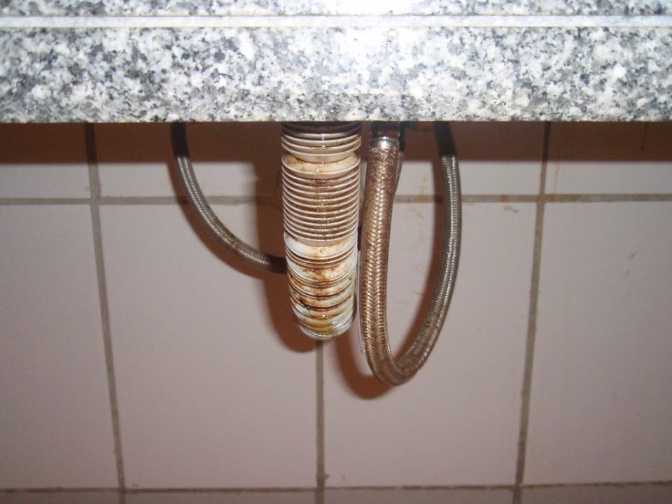 Unter dem WaschbeckenDer Stöpsel war fest also hat mein Mann drunter geguckt, das war wohl ein großer Fehler