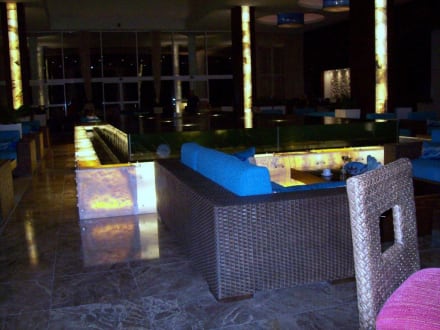 sehr moderne Hotellobby abends beleuchtet