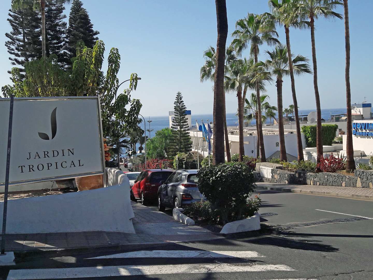 Einfahrt zum Hotel + Blick zum Meer