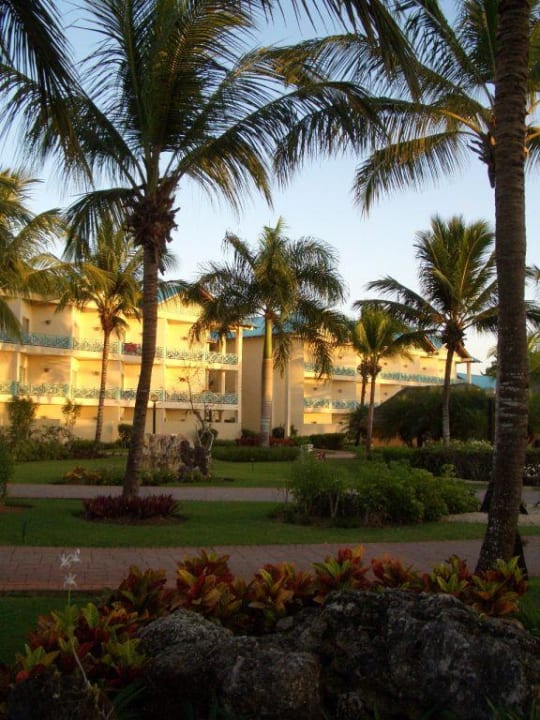 Blick auf eines der Gebäude mit GrünanlageTeil der Gartenanlage mit einem Gebäudeteil in der Abendsämmerung