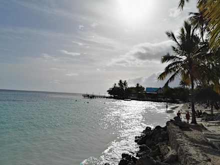 Felsiger Strand - scharfkantig, Sand ist nur aufgefüllt!