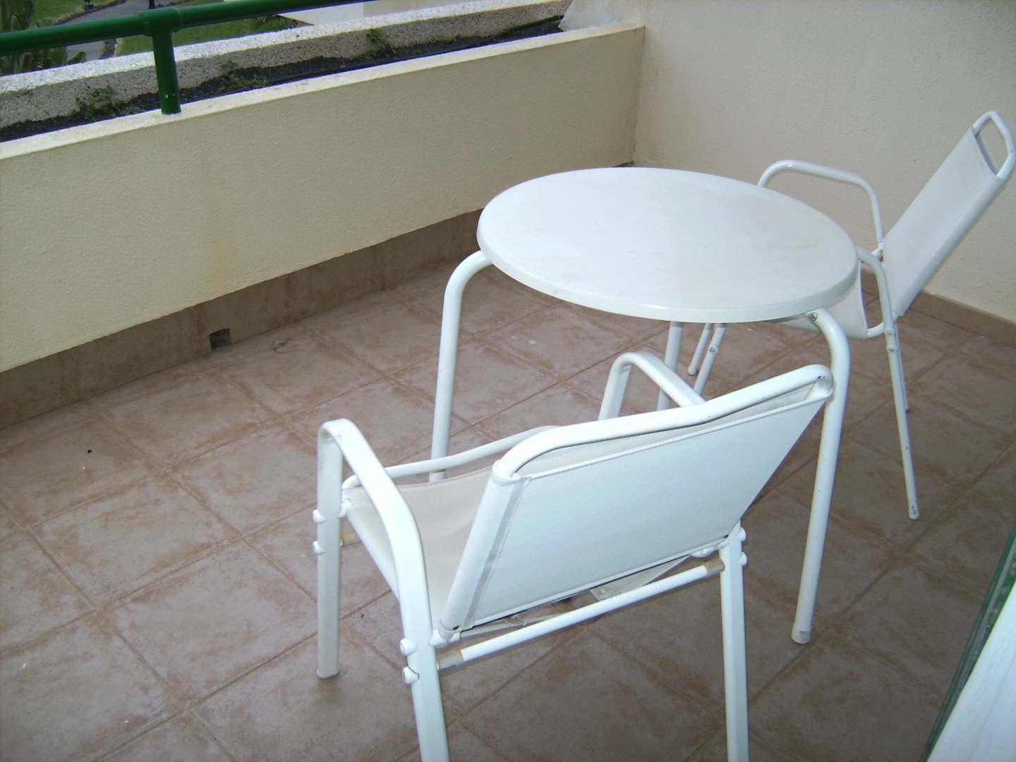 Terrasse mit Tisch und 2 Stühlen ohne Auflagen