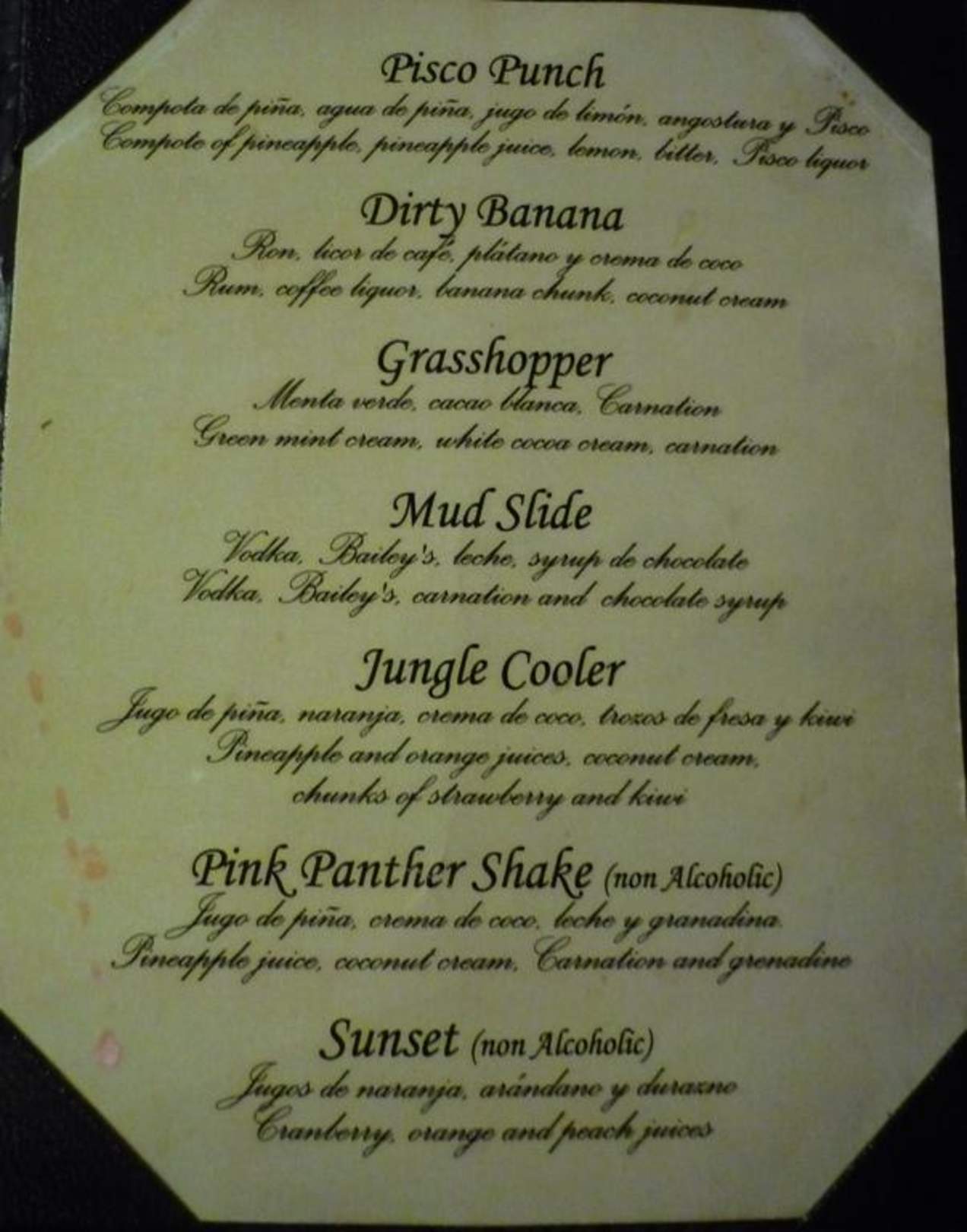 Cocktailkarte Rendezvous Lobby Bar  Dreams Riviera Cancun Resort & Spa