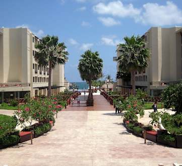 Blick vom Hauptgebäude Richtung Pool/Strand