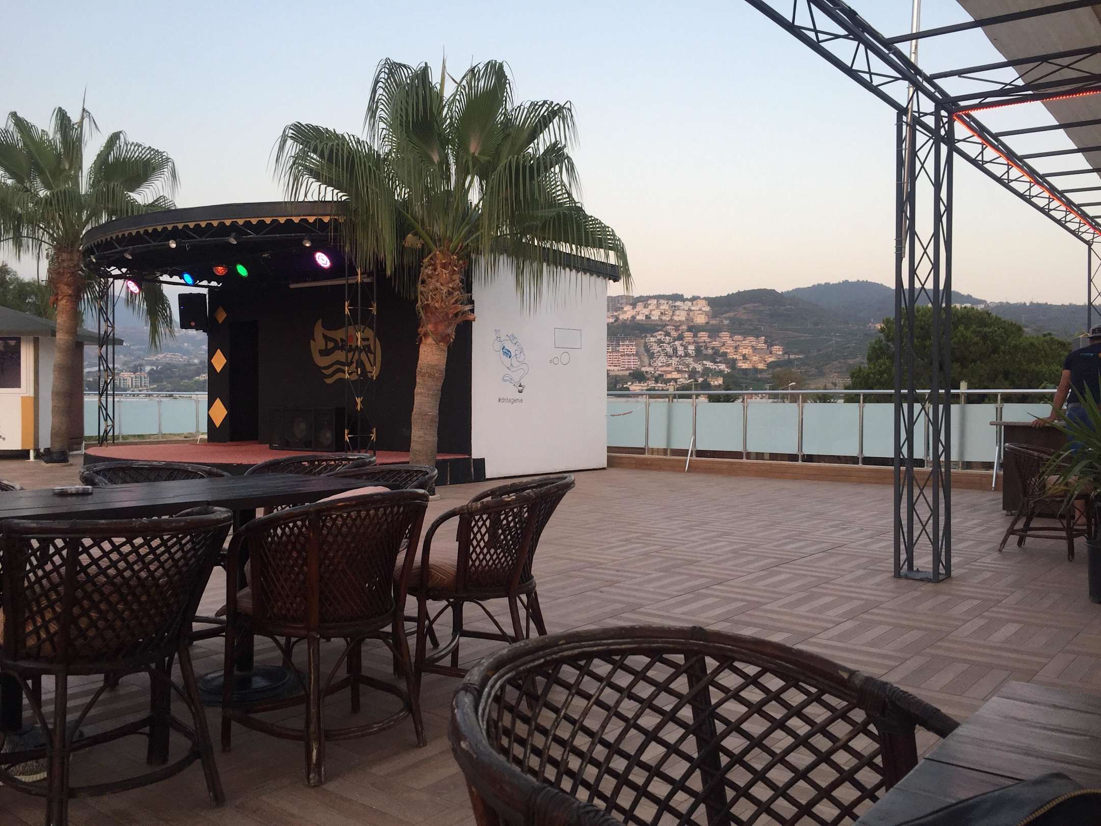 Terrasse mit Animationsbühne und Shisha-Bar