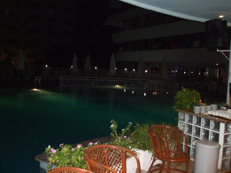 Poolanlage am Abend