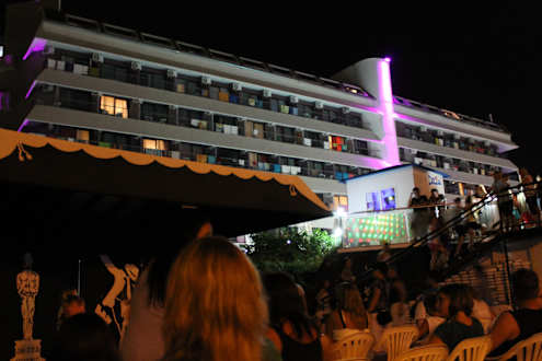 Blick auf Hotel - abends beleuchtet