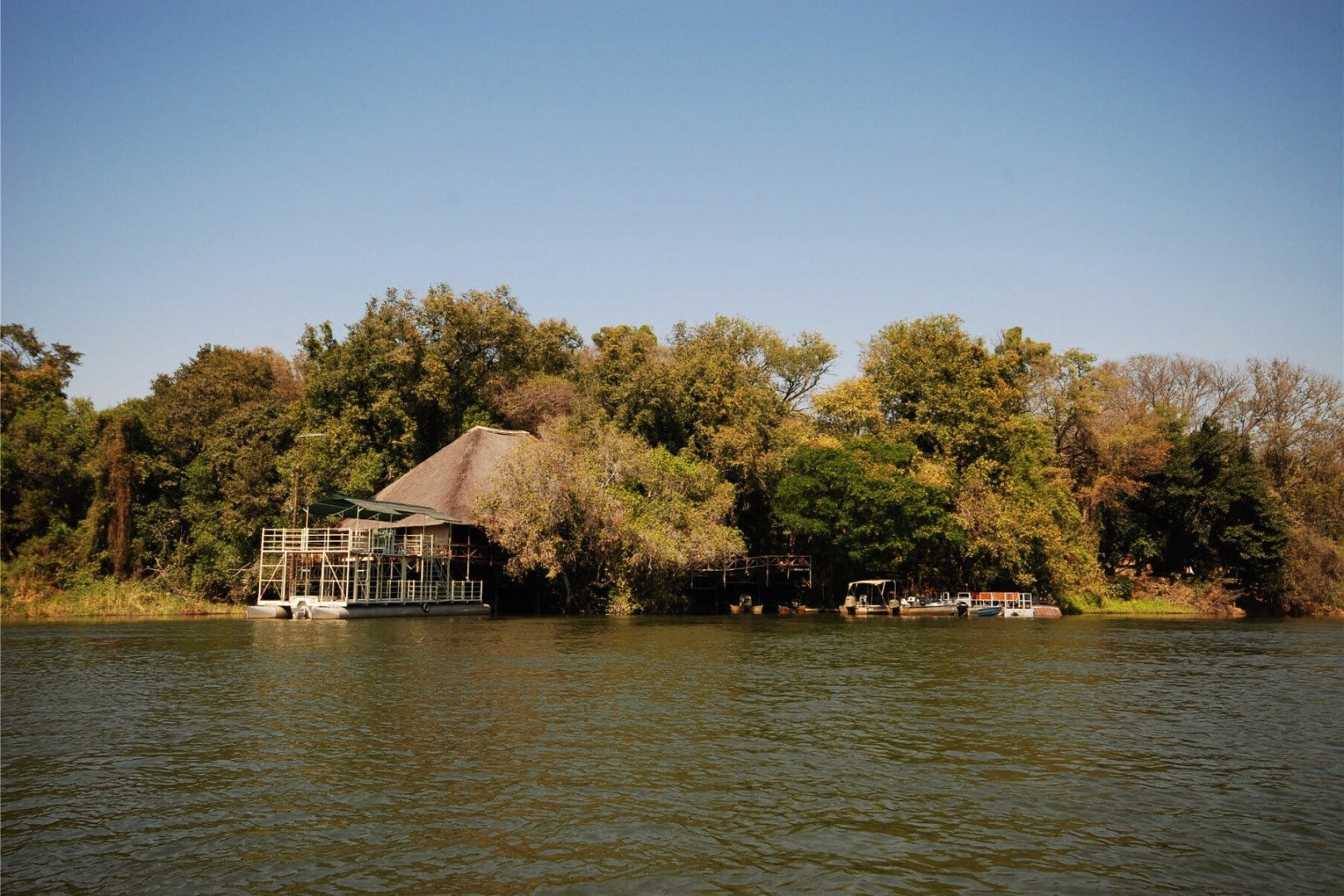 Bllick vom Okavango auf das Haupthaus
