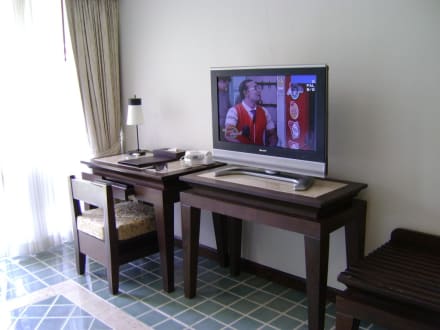 Schreibtisch mit Fernseher
