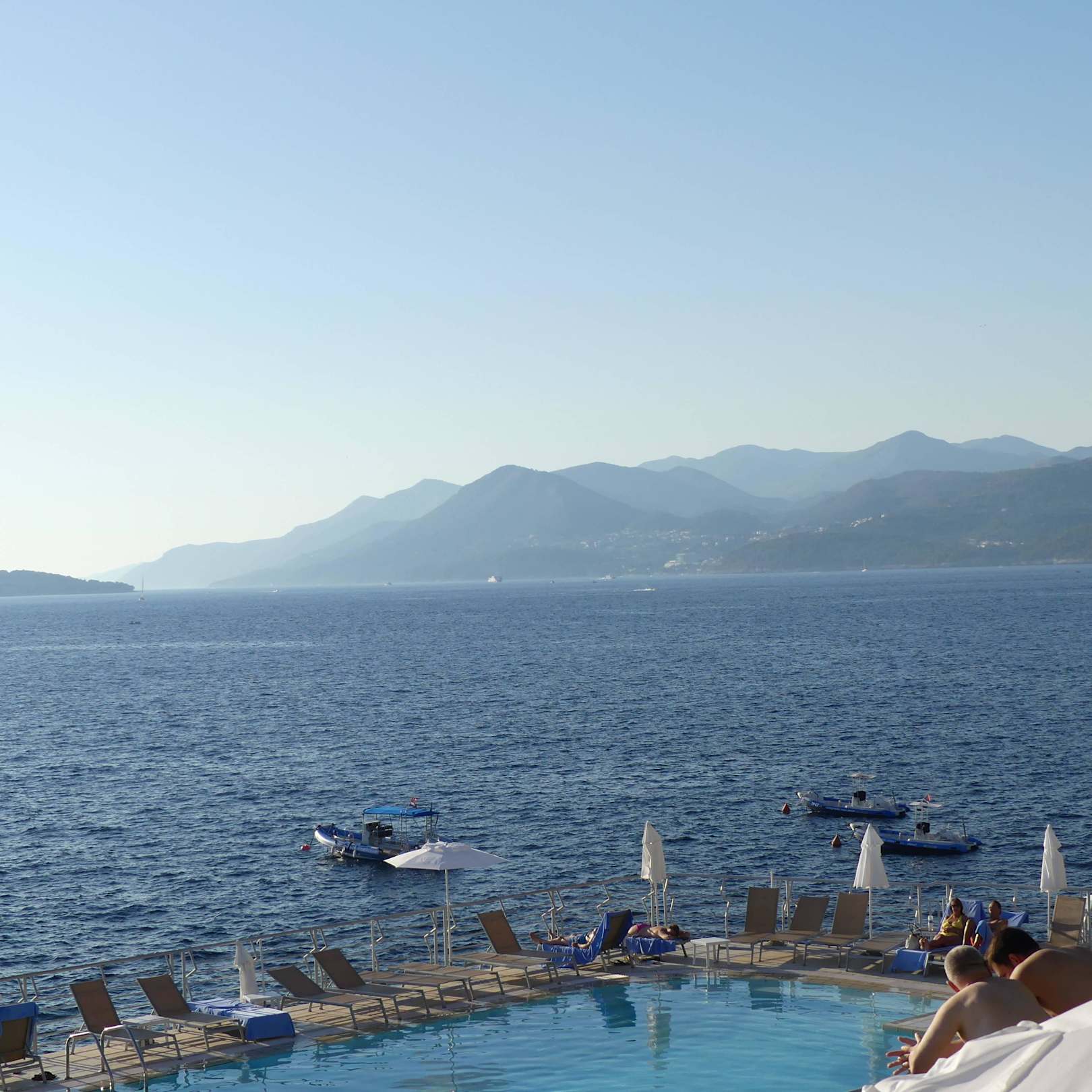 Blick auf Pool + Meer
