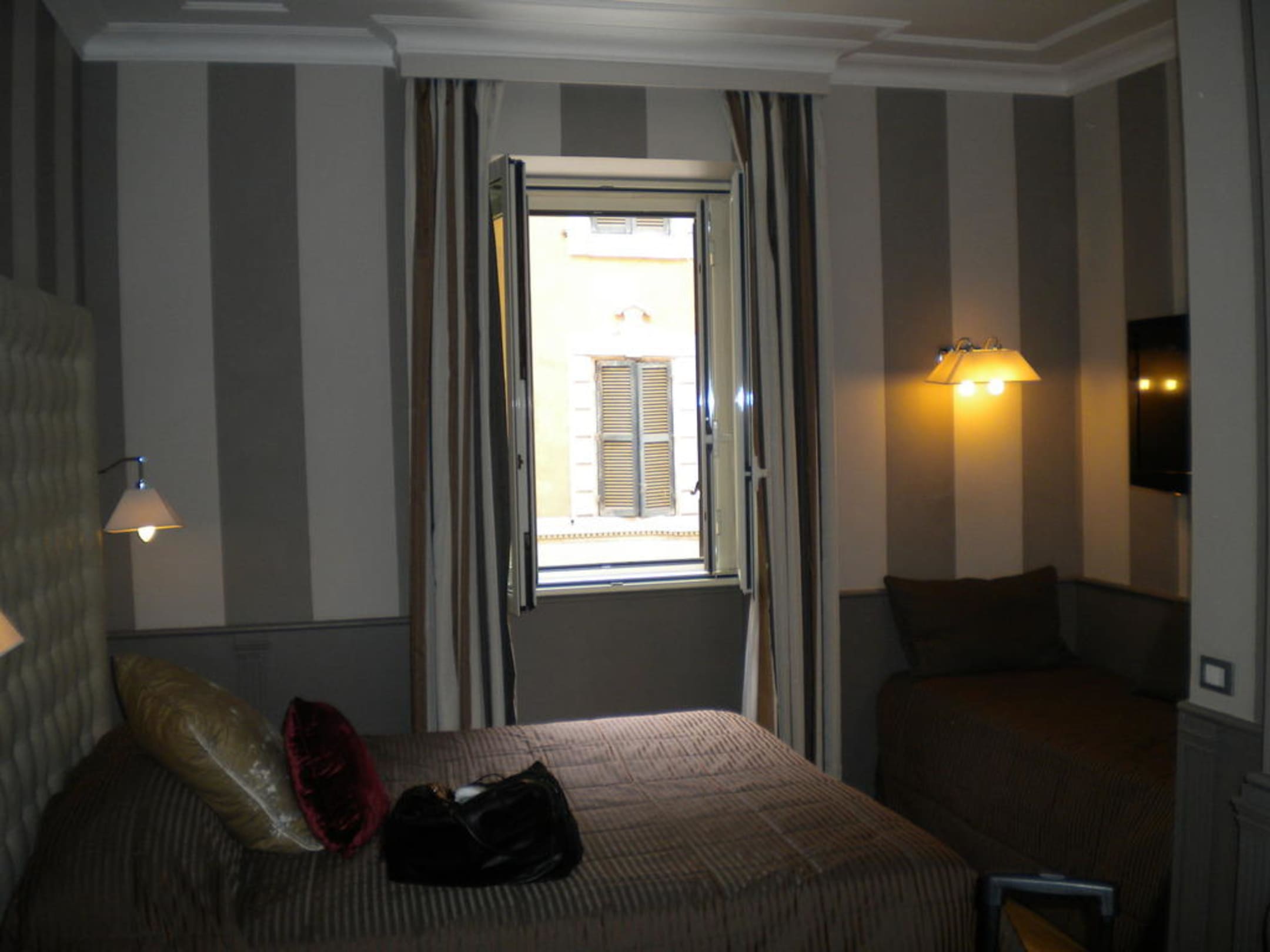 Mehrbettzimmervorne links Doppelbett, rechts Nische mit Einzelbett (weiteres Einzelbett im anderen Zimmer/Flur)