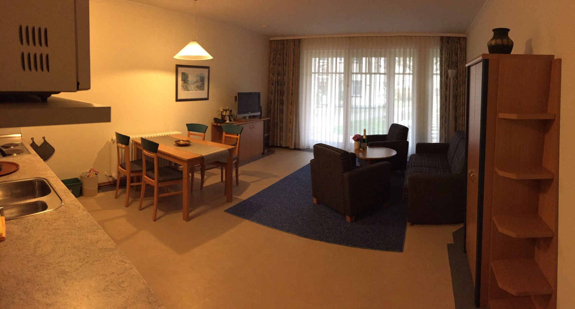 Wohnzimmer mit Essbereich und Küche