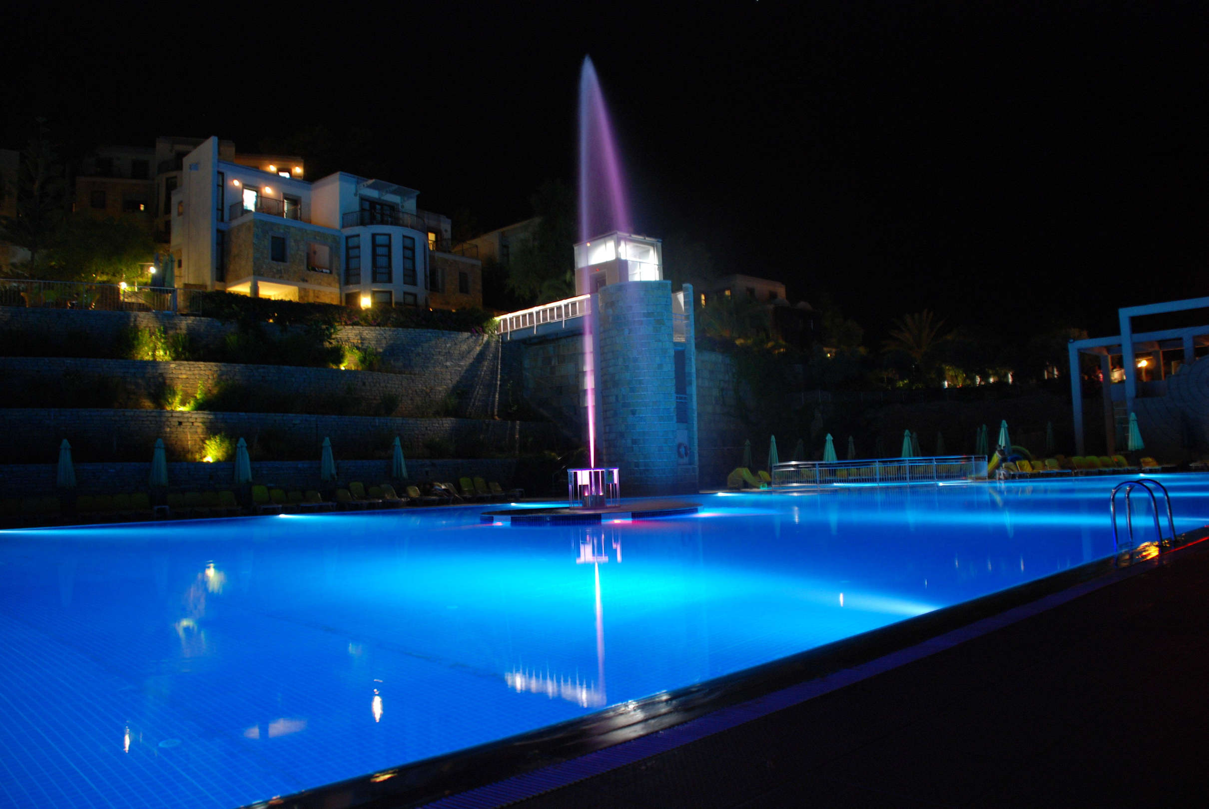 Night view of pool fountain