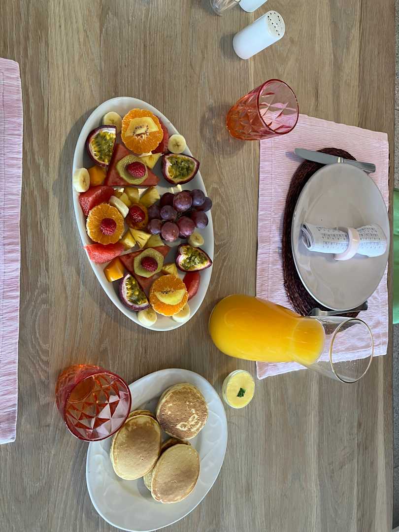 Frühstück, Obstteller mit Pancakes