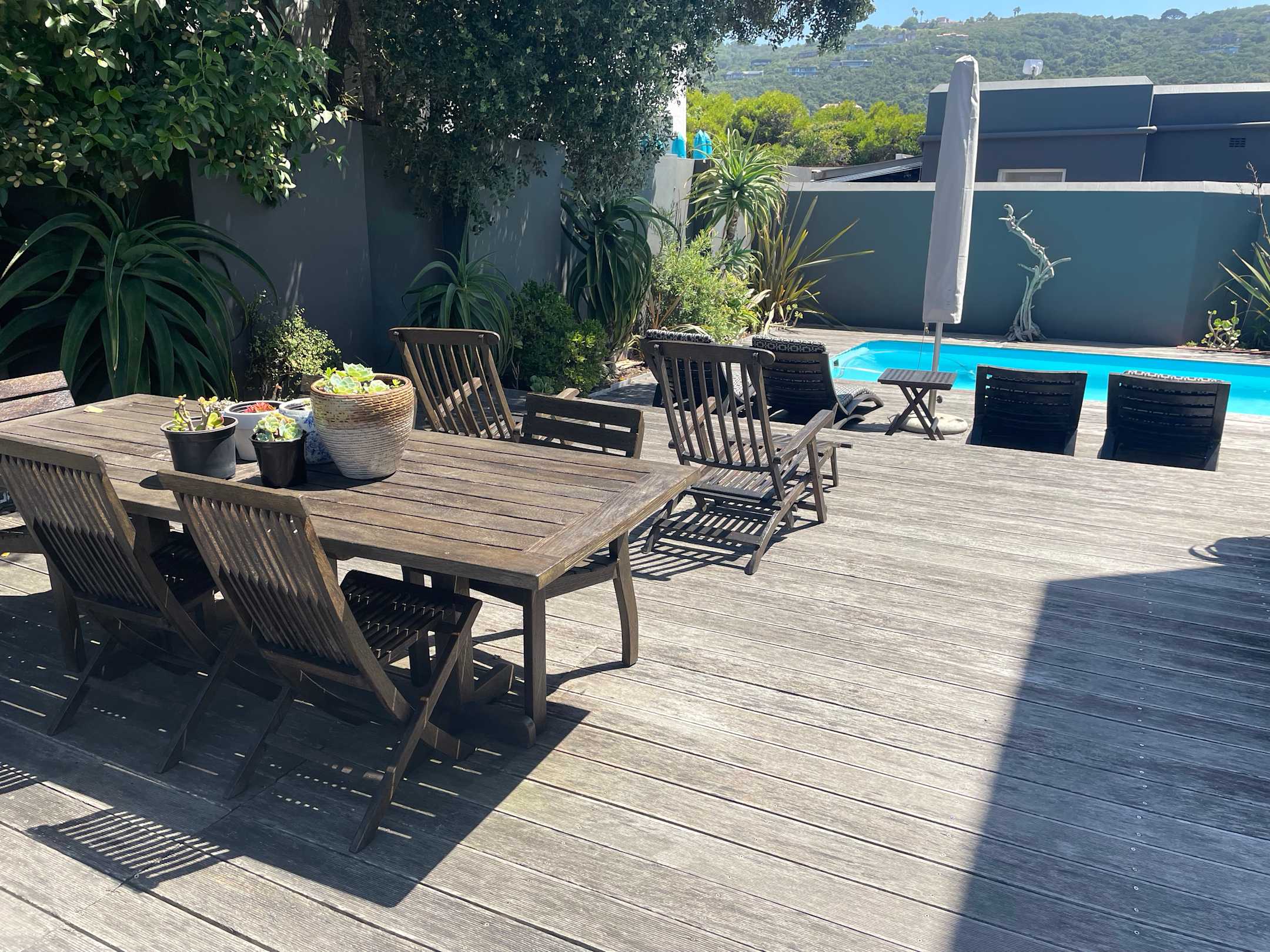 Terrasse mit kleinem Pool, Blick zur ruhigen Strasse