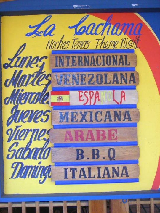 Themenabende im Buffet-Restaurant "La Cachama"Die Tage können variieren. Dann wurden die Schilder umgesteckt.