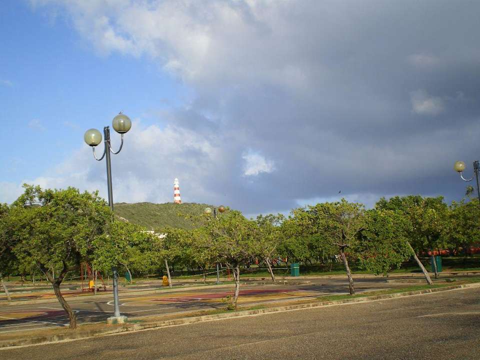 Blick vom Parkplatz auf den Leuchtturm