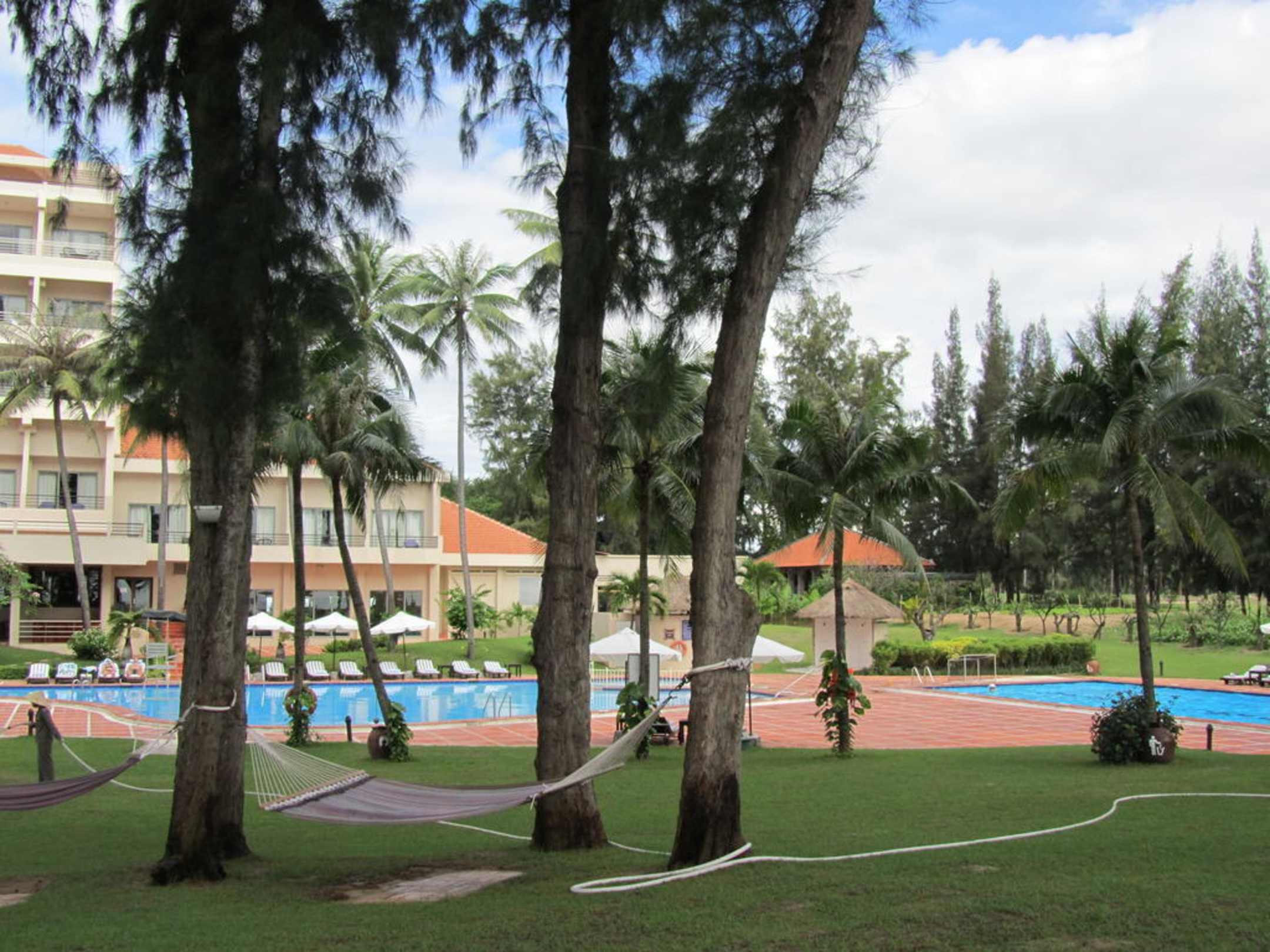 Blick zum Pool von Strand aus