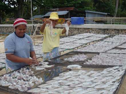 Tintenfische werden zum Trocknen ausgelegtin der Nähe des Hotels leben noch Fischer, die ihren Fang zum Trocknen auslegen
