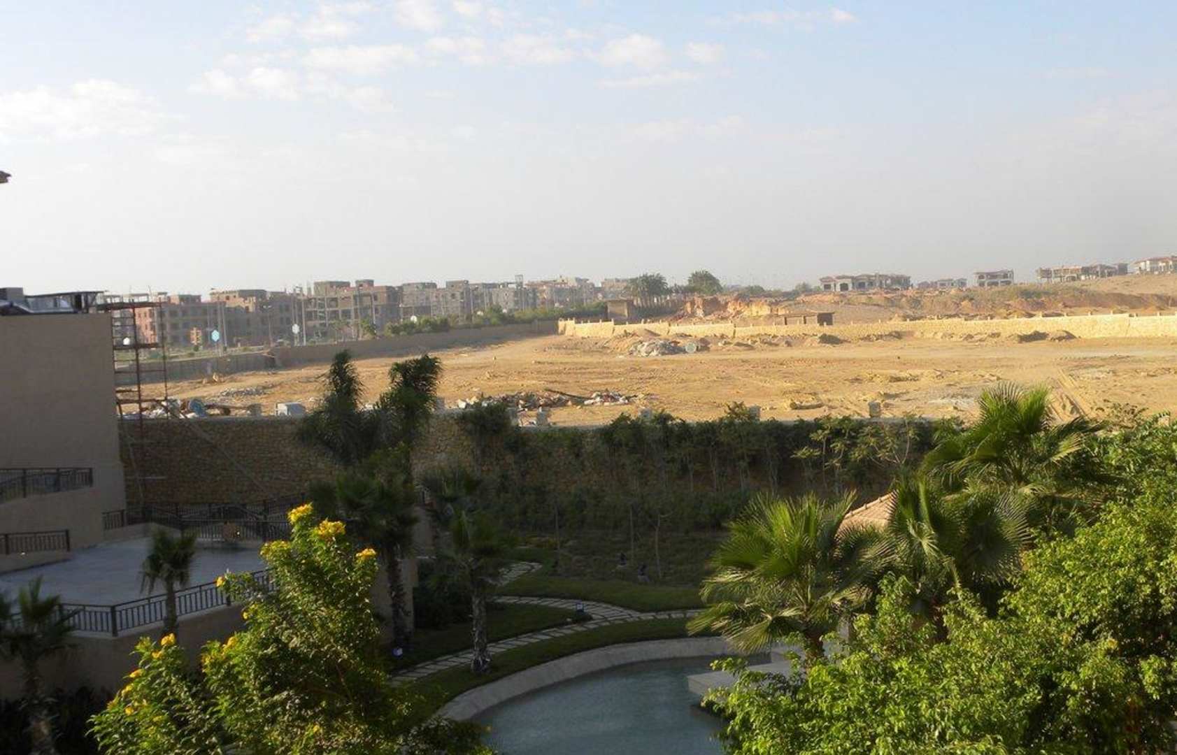 Blick über die Gartenanlage auf die Wüste