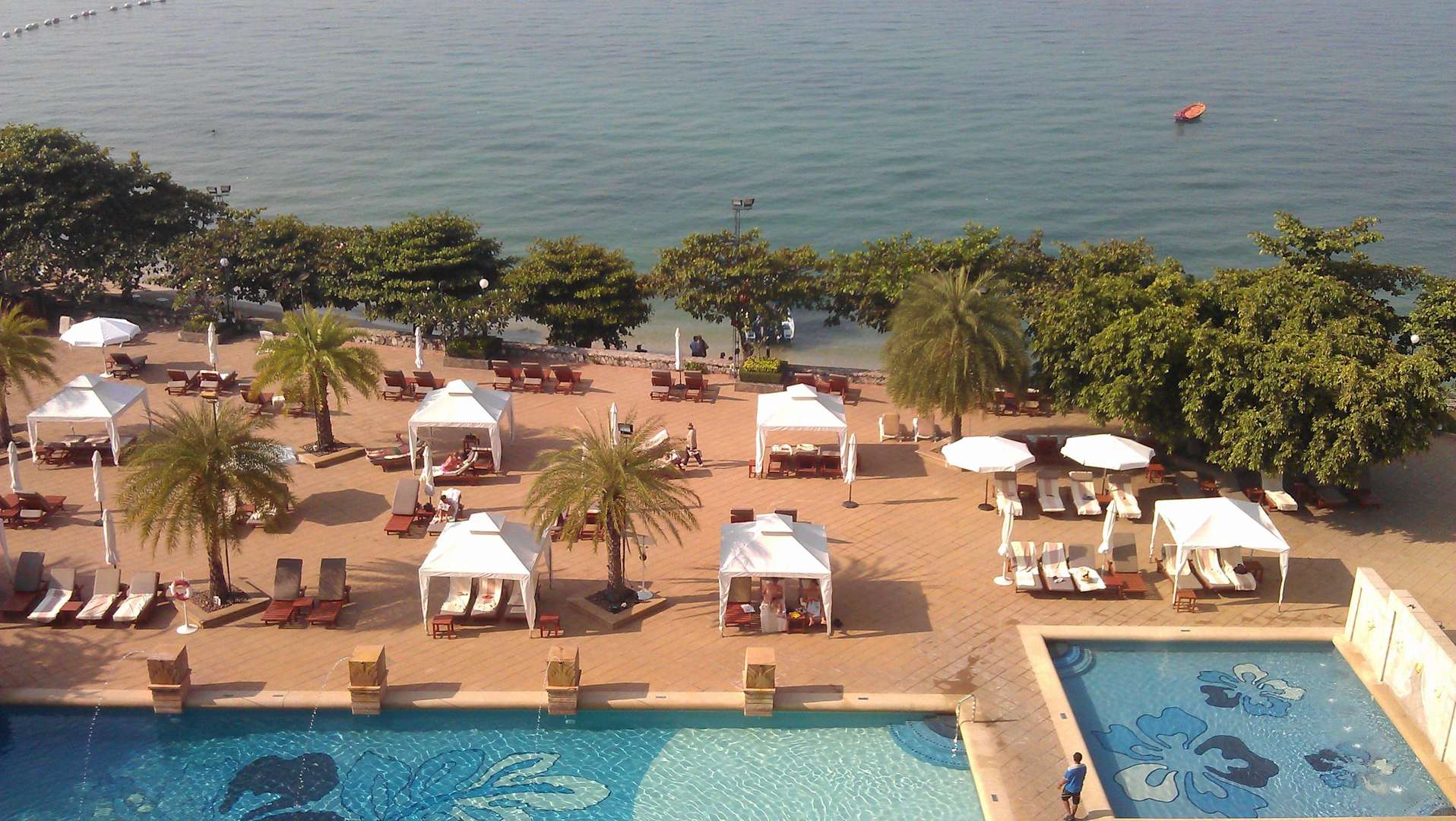 Blick vom Balkon auf einen der Pools