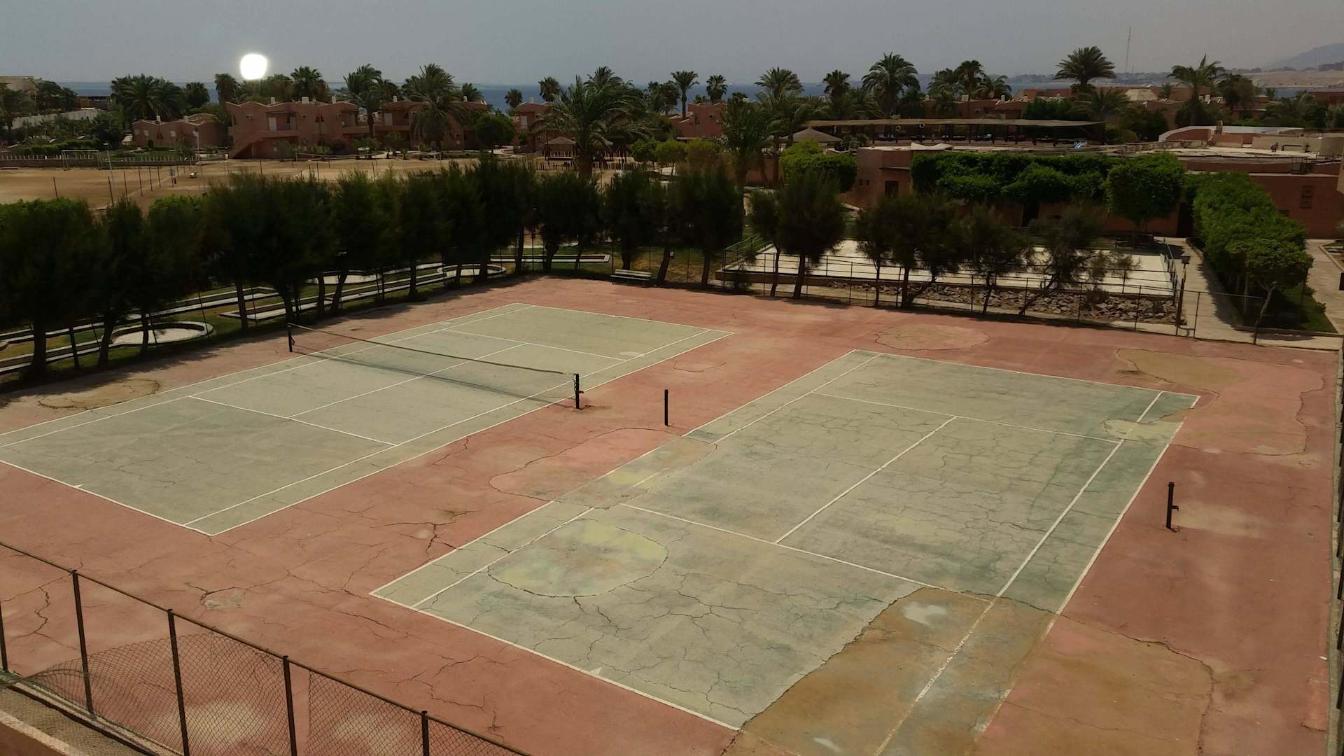 Aussicht auf die gepflegten Tennisplätze