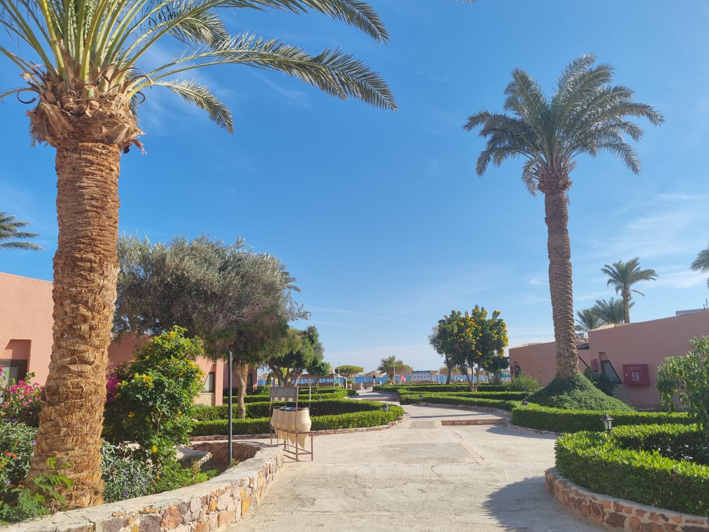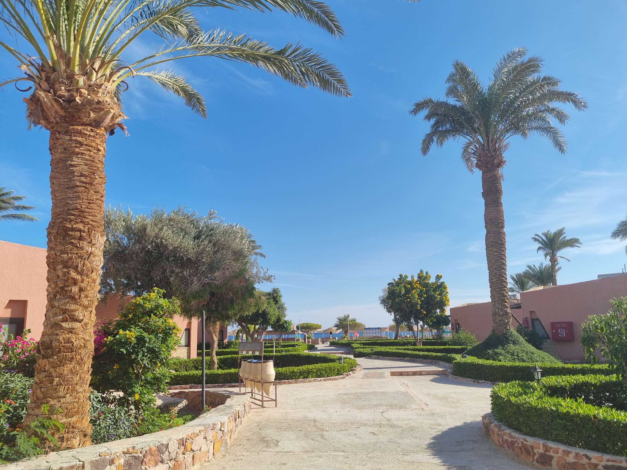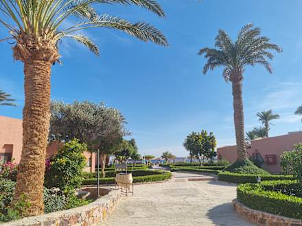 GartenanlageRechts und links die Bungalows, auf dem Weg zum Strand.