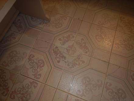 Defekte Bodenfliesen überall im Zimmer