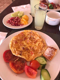 Das super leckere Frühstück. Mit frischem Omelette.