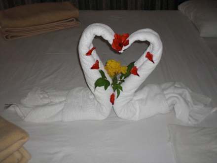 Jeden Tag eine neue Creation auf dem Bett