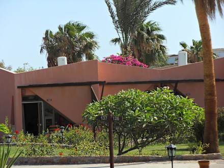 Blick vom Strand auf die Bungalows