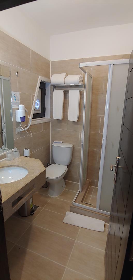 ZimmerBad - die Dusche mit Duschwand, im Fenster integrierter Lüfter