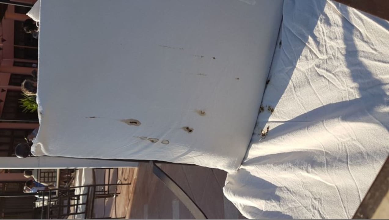 So sahen Polster der Stühle auf der Terasse aus